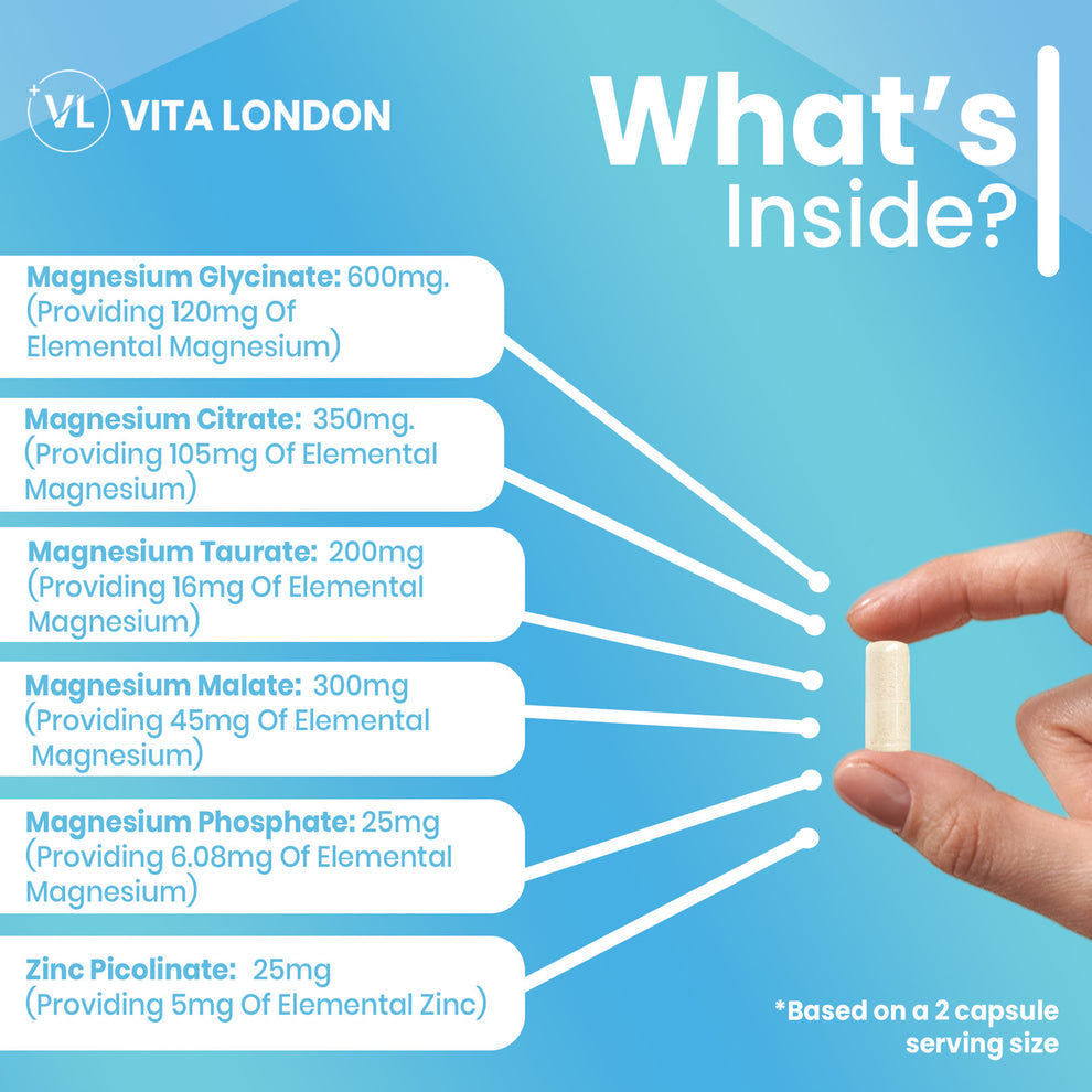 Magnesium Glycinate – 600mg (providing 120mg elemental magnesium)