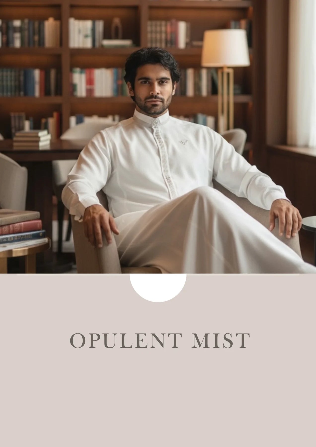 An expression of refined craftsmanship, this Signature White Arabian Thobe is designed for those who appreciate subtle luxury woven into timeless tradition.