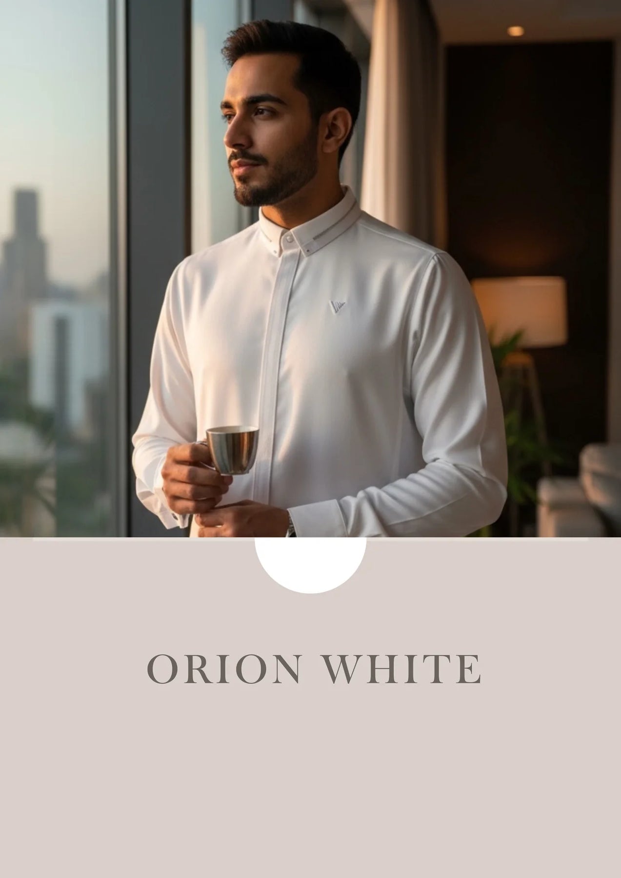 Made from a lightweight, breathable fabric, this thobe offers all-day comfort while maintaining a crisp, structured look. The modern collar design is elevated with a subtle metallic trim, adding a discreet touch of luxury without compromising simplicity.