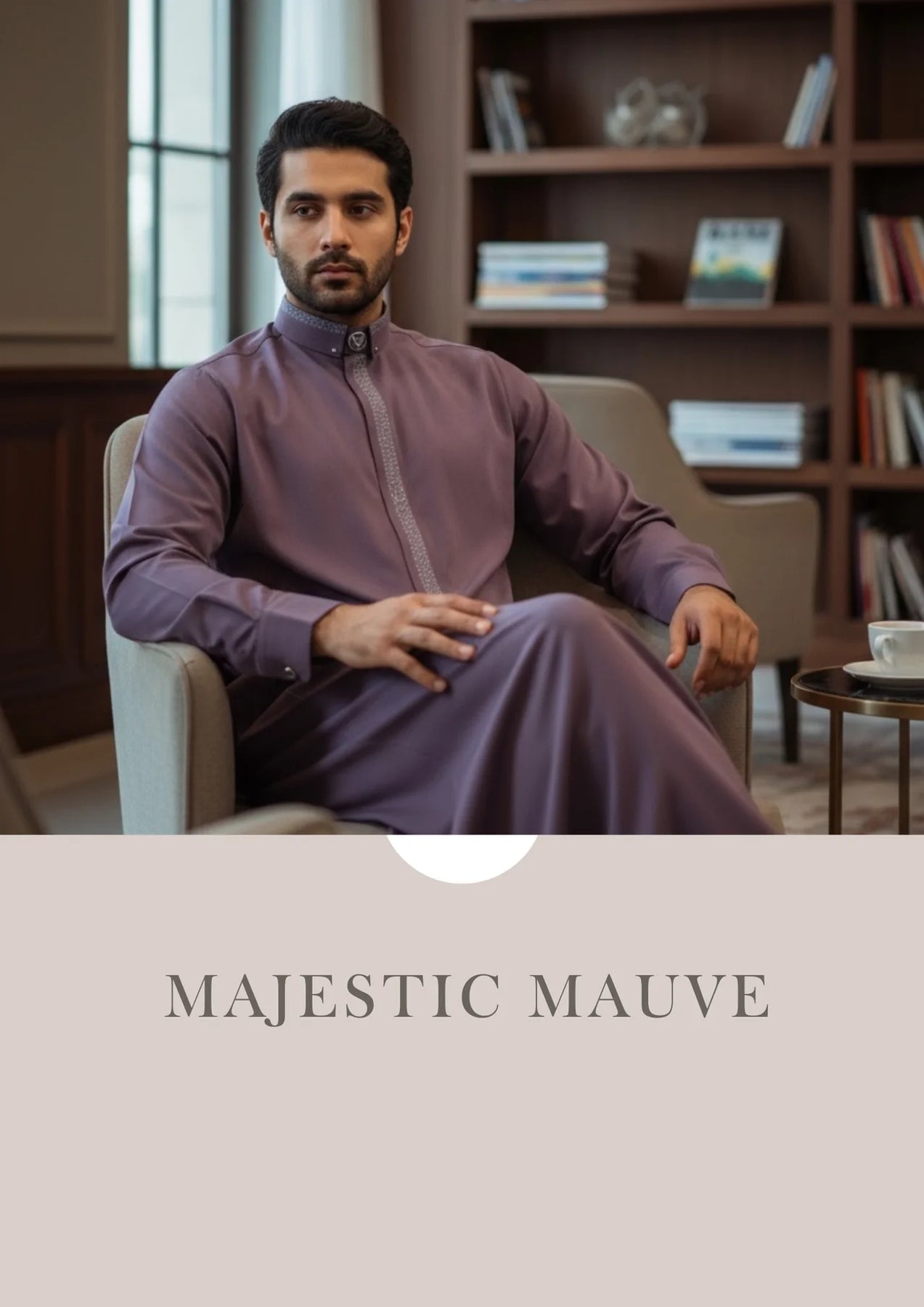 The AAR2645 Al Ameer Thobe offers a refined expression of modern luxury. Crafted from premium smooth fabric, it features a contrasting patterned collar and placket, finished with a signature Al Ameer emblem button for a bold yet elegant touch. Designed for comfort, durability, and elevated style, this piece reflects Arabian heritage refined through British craftsmanship.