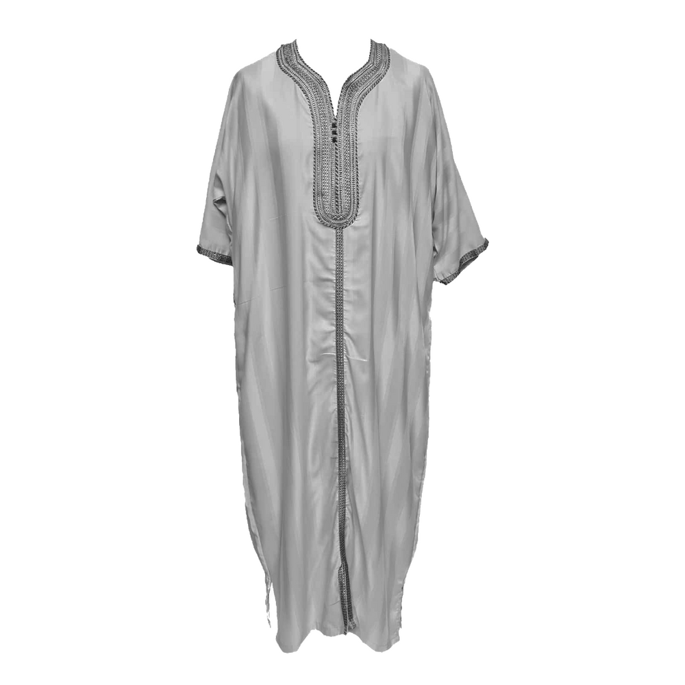 Beautiful half sleeve moroccan thobe. Can be easily worn over other garments just like the Moroccans do. Has slight stripes. Design may ever so slightly differ.